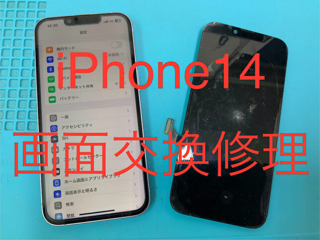 iPhone14の修理です。画面破損との症状でしたが、画面交換で無事に復旧!