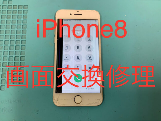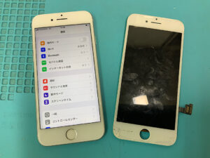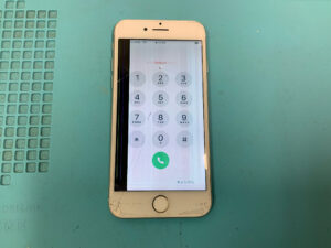 iPhone8の修理です。画面が割れて正常に映らないとの症状でしたが、画面交換で無事に復旧!