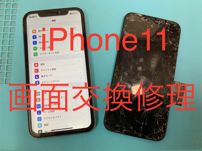 iPhone11の修理です。画面破損との症状でしたが、画面交換で無事に復旧!
