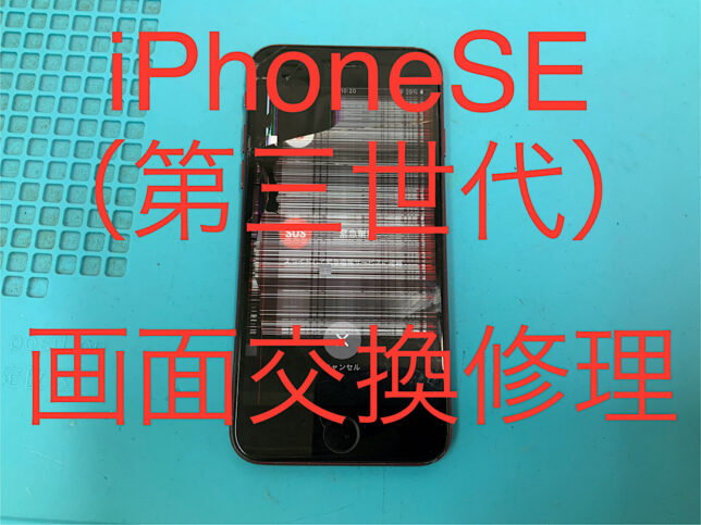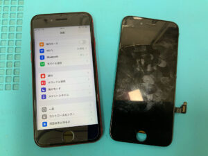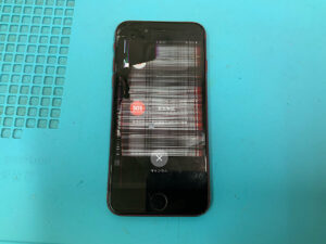iPhoneSE3の修理です。画面が割れて正常に映らないとの症状でしたが、画面交換で無事に復旧!