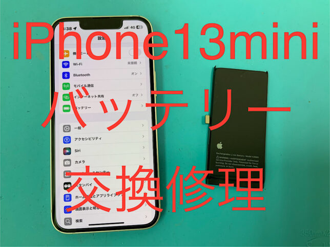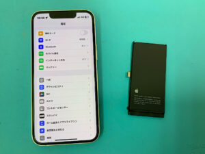 iPhone13miniの修理です。バッテリーの持ちが悪いとの症状でしたが、バッテリー交換で無事に復旧!