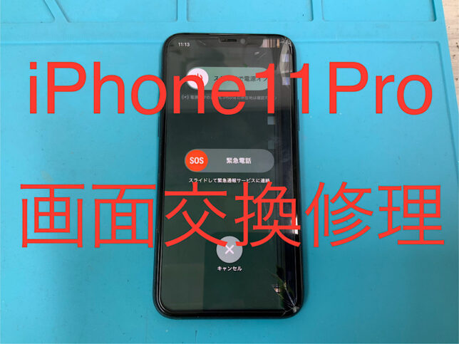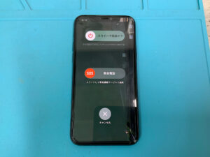 iPhone11Proの修理です。画面が割れて正常に映らないとの症状でしたが、画面交換で無事に復旧!