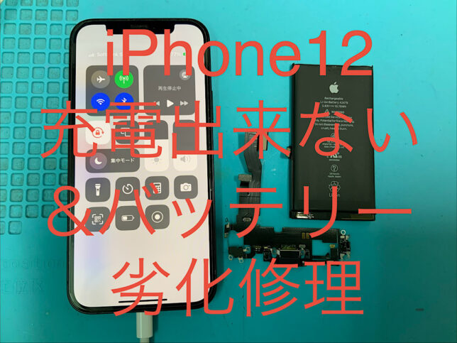 iPhone12の修理です。バッテリー劣化&充電不良との症状でしたが、部品交換で無事に復旧!
