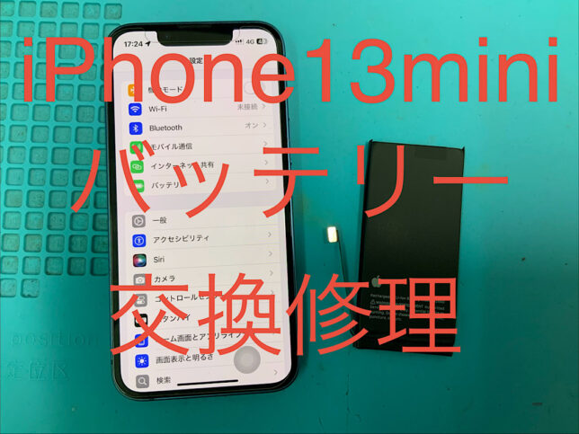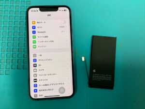 iPhone13miniの修理です。バッテリーの持ちが悪いとの症状でしたが、バッテリー交換で無事に復旧!