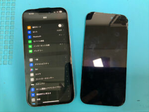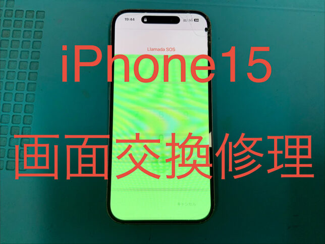 iPhone15の修理です。画面割れで正常に映らないとの症状でしたが、画面交換で無事に復旧!