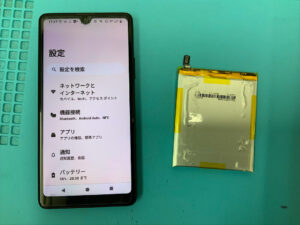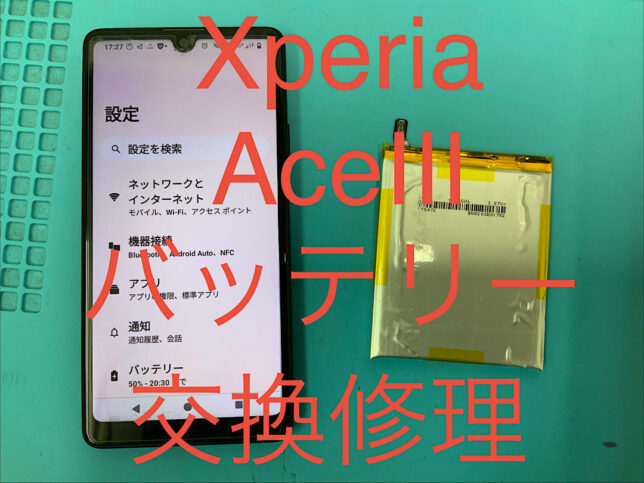 Xperia AceⅢの修理です。バッテリーの持ちが悪いとの症状でしたが、バッテリー交換で無事に復旧!