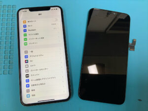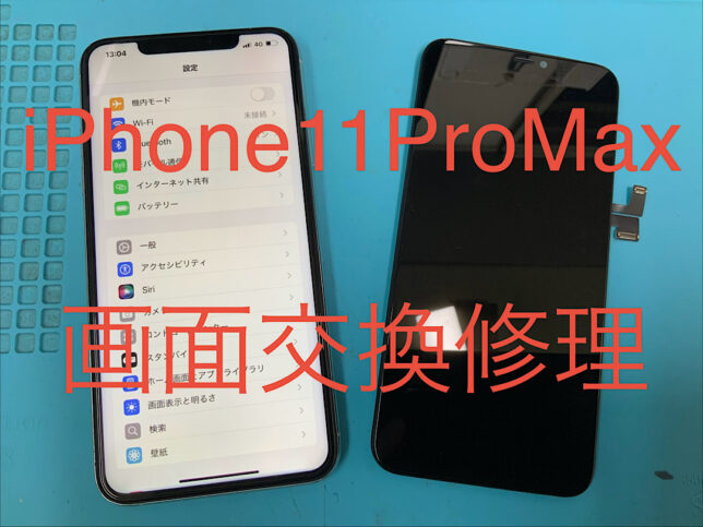 iPhone11ProMaxの修理です。液晶割れで正常に映らないとの症状でしたが、画面交換で無事に復旧!