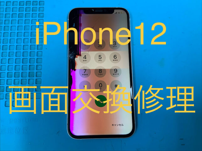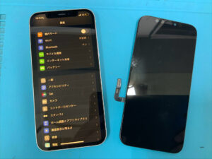 iPhone12の修理です。画面割れで正常に映らないとの症状でしたが、画面交換で無事に復旧!