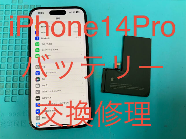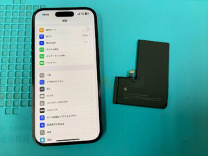 iPhone14Proの修理です。バッテリーの持ちが悪いとの症状でしたが、バッテリー交換で無事に復旧!
