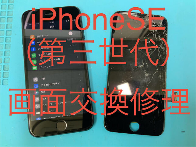 iPhoneSE3の修理です。画面破損との症状でしたが、画面交換で無事に復旧!