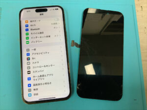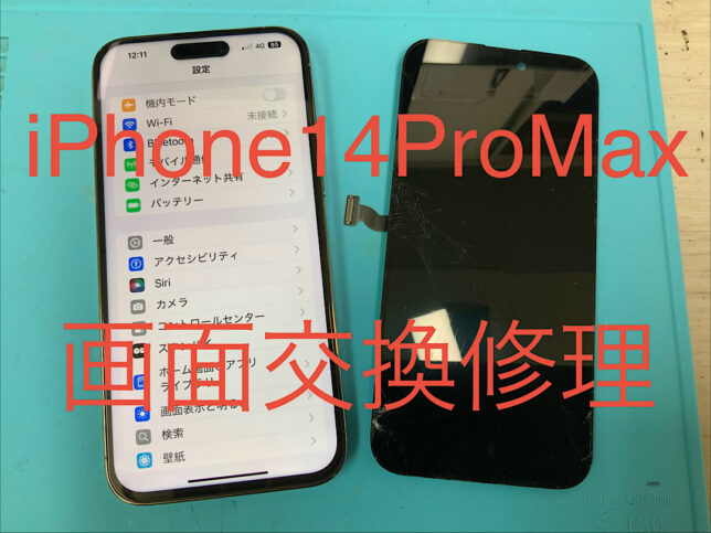 iPhone14ProMaxの修理です。画面割れで正常に映らないとの症状でしたが、画面交換で無事に復旧!