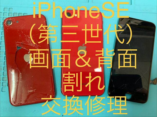 iPhoneSE3の修理です。画面と背面ガラス割れとの症状でしたが、画面とバックガラスパネル交換で無事に復旧!