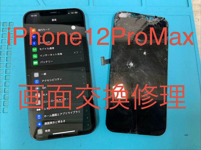 iPhone12ProMaxの修理です。画面破損との症状でしたが、画面交換で無事に復旧!