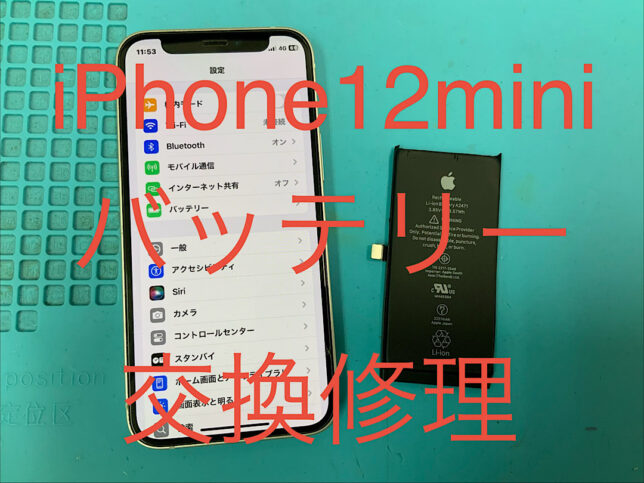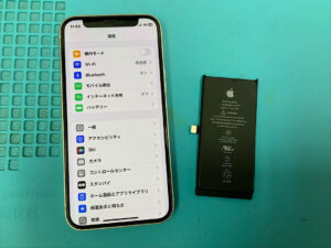 iPhone12miniの修理です。電源入らないとの症状でしたが、バッテリー交換で無事に復旧!