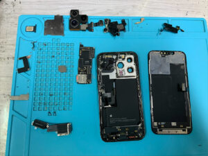 iPhone13Proの修理です。水没によりリンゴループで起動しないとの症状でしたが、内部クリーニングで無事に復旧!