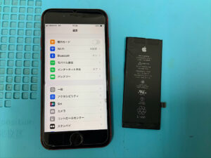 iPhoneSE2の修理です。電源入らないとの症状でしたが、バッテリー交換で無事に復旧!