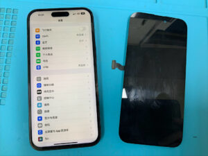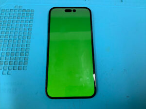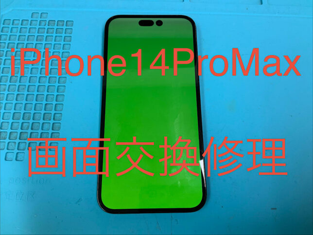 iPhone14ProMaxの修理です。液晶割れで正常に映らないとの症状でしたが、画面交換で無事に復旧!