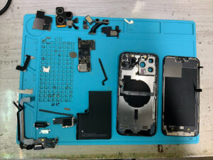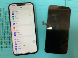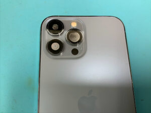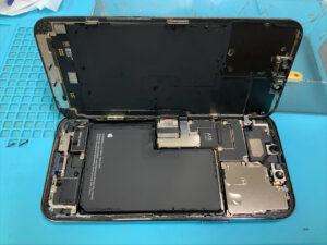 iPhone13ProMaxの修理です。水没により映らないとの症状でしたが、内部クリーニングと画面交換で無事に復旧!