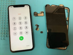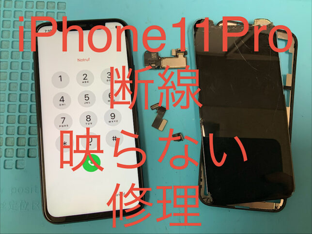 iPhone11Proの修理です。画面外れて断線との症状でしたが、画面とイヤースピーカー交換で無事に復旧!