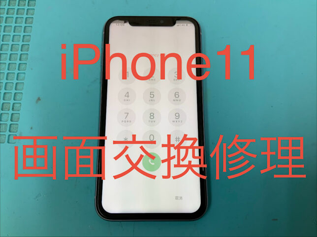 iPhone11の修理です。液晶割れで正常に映らないとの症状でしたが、画面交換で無事に復旧!