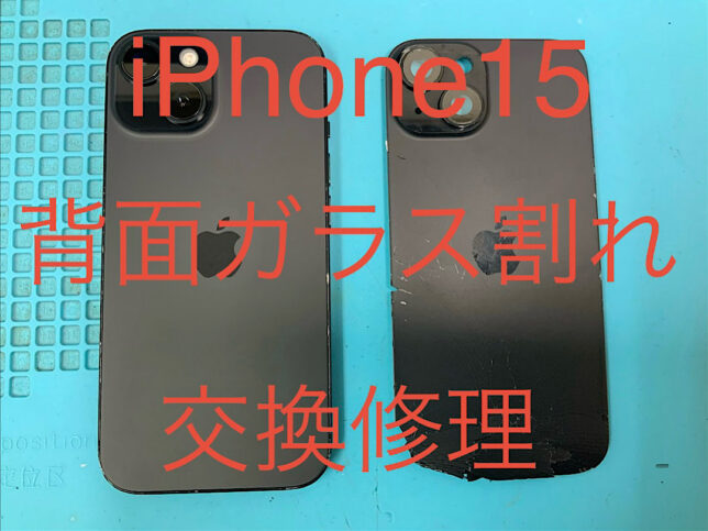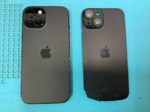 iPhone15の修理です。背面ガラスが割れてしまったとの症状でしたが、バックガラスパネル交換で無事に復旧!