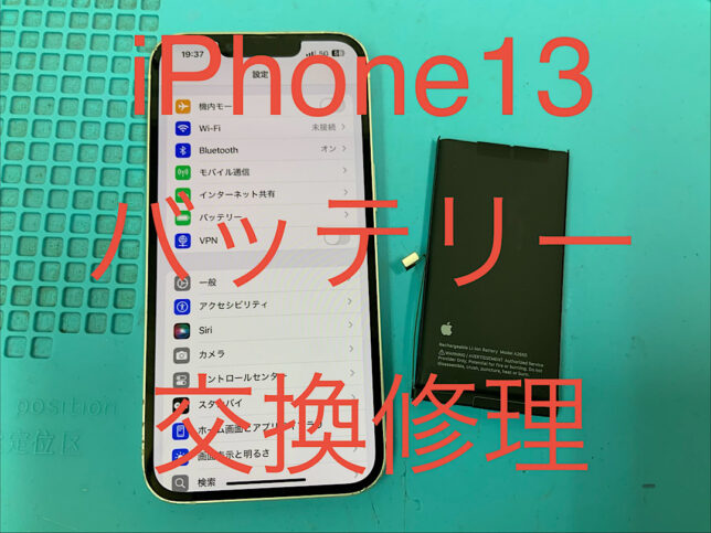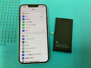 iPhone13の修理です。電池の持ちが悪いとの症状でしたが、バッテリー交換で無事に復旧!