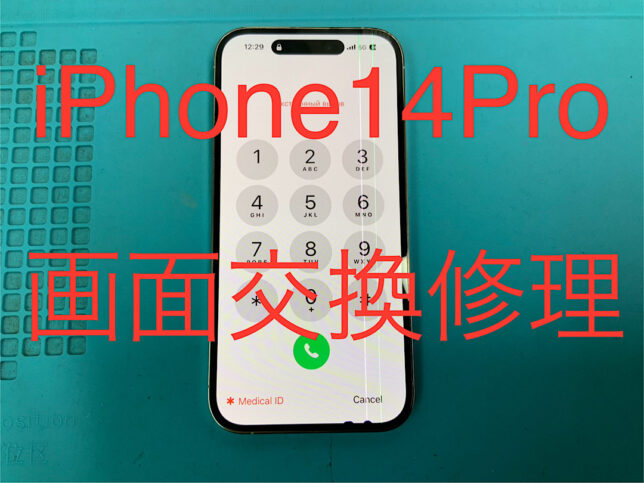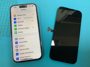 iPhone14Proの修理です。映像に線が入るとの症状でしたが、画面交換で無事に復旧!