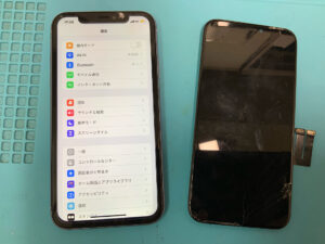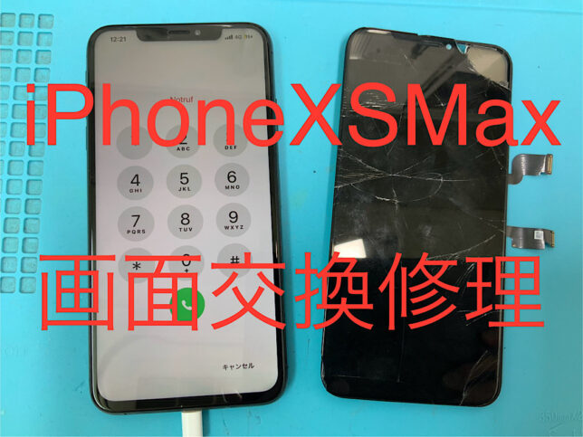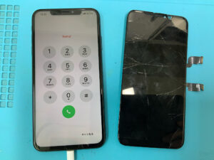 iPhoneXSMaxの修理です。画面割れで正常に映らないとの症状でしたが、画面交換で無事に復旧!