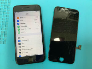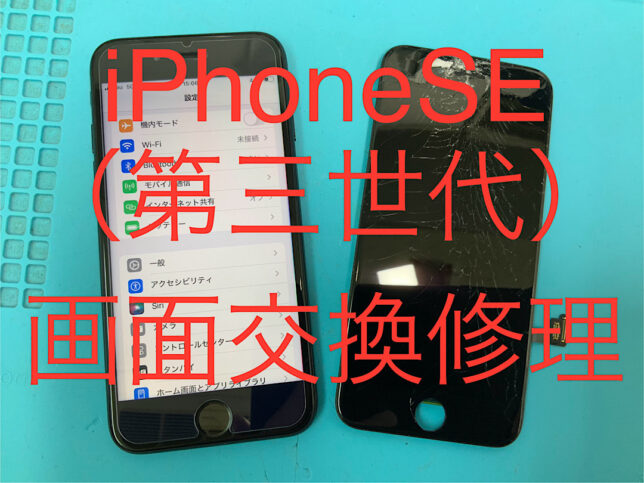 iPhoneSE3の修理です。画面破損との症状でしたが、画面交換で無事に復旧!