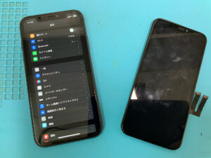 iPhoneXの修理です。映らないとの症状でしたが、画面交換で無事に復旧!