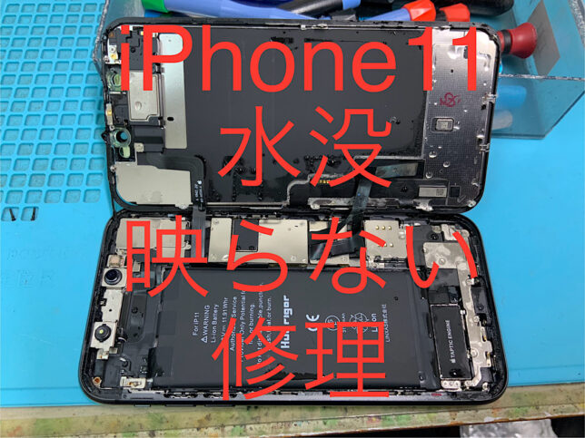 iPhone11の修理です。水没により映らないとの症状でしたが、内部クリーニングと画面交換で無事に復旧!