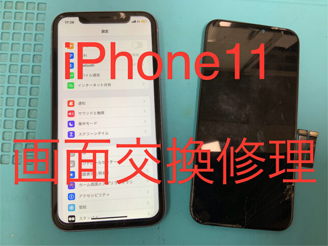 iPhone11の修理です。画面が割れてタッチ効かないとの症状でしたが、画面交換で無事に復旧!