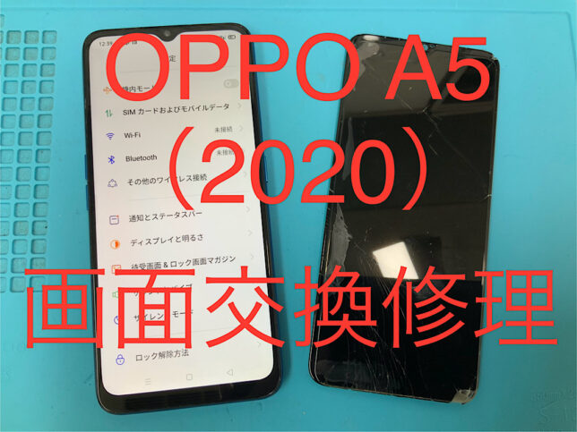 OPPO A5(2020)の修理です。映らないとの症状でしたが、画面交換で無事に復旧!
