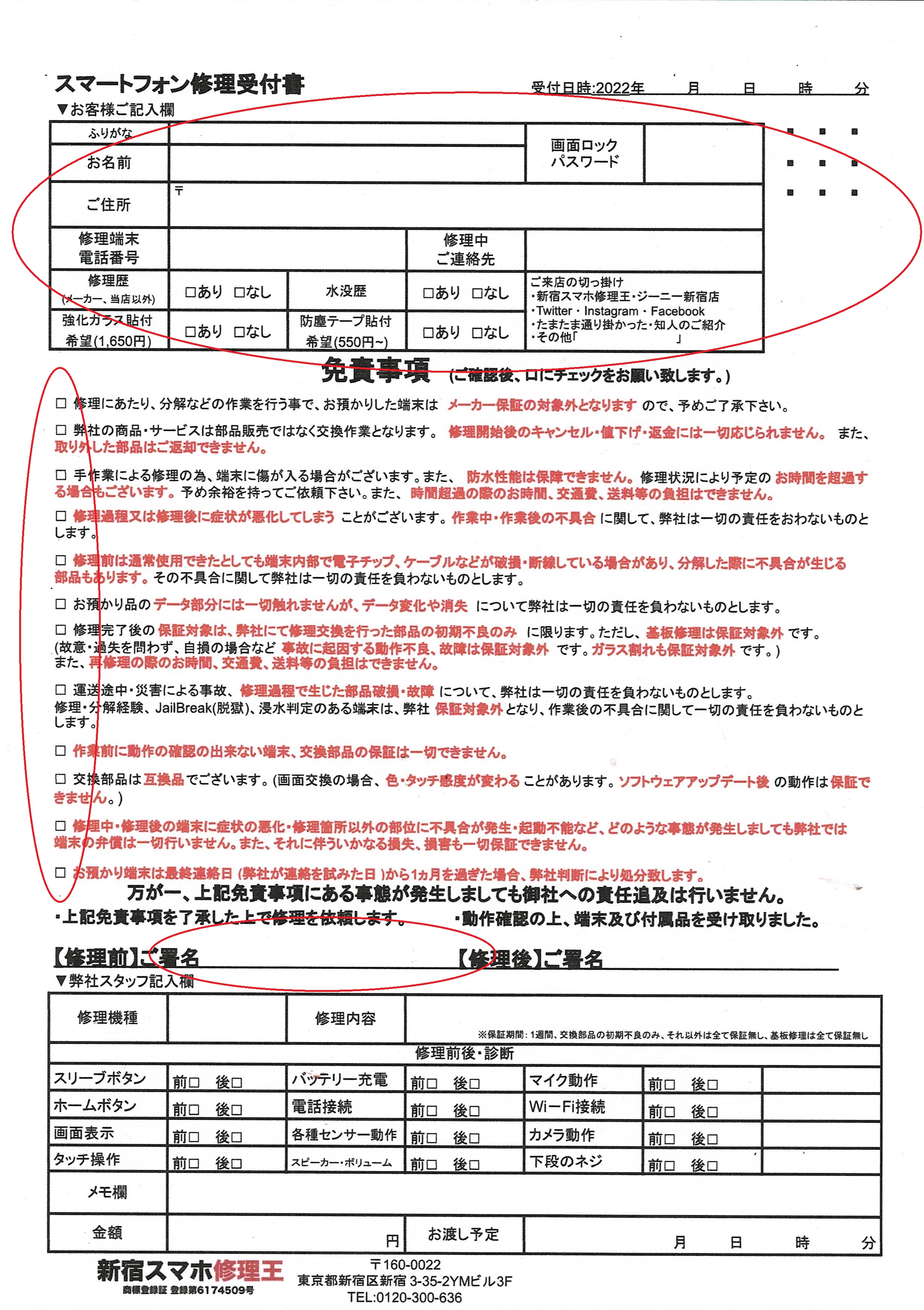 当店の郵送修理は書類と一緒にスマホを送ってもらうだけ!さらに必要書類はこのページからダウンロードが可能です。